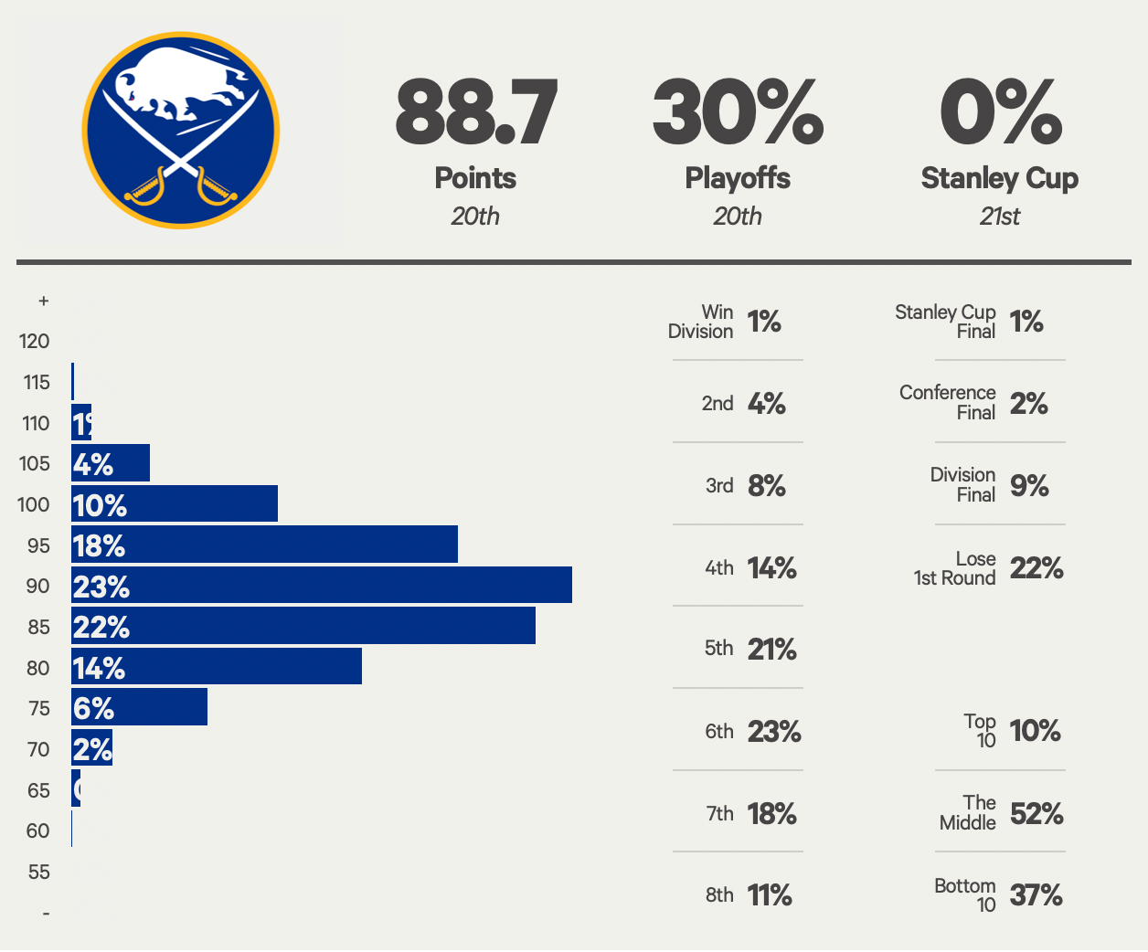 The hype surrounding the Buffalo Sabres last summer was filled with so much fervor that it led to much internal doubt regarding our own forecast. Turns out 87 points was pretty on the money for yet another disappointing season in Buffalo.