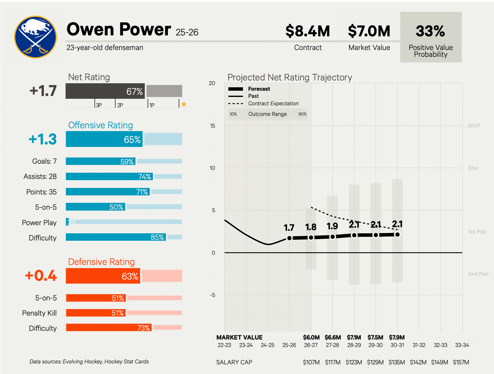 To Power’s credit, he has been improving on the fly this season. His defense has actually ticked up as the Sabres shot up the standings over the last month-plus of action. The key now is playing at that level more consistently.